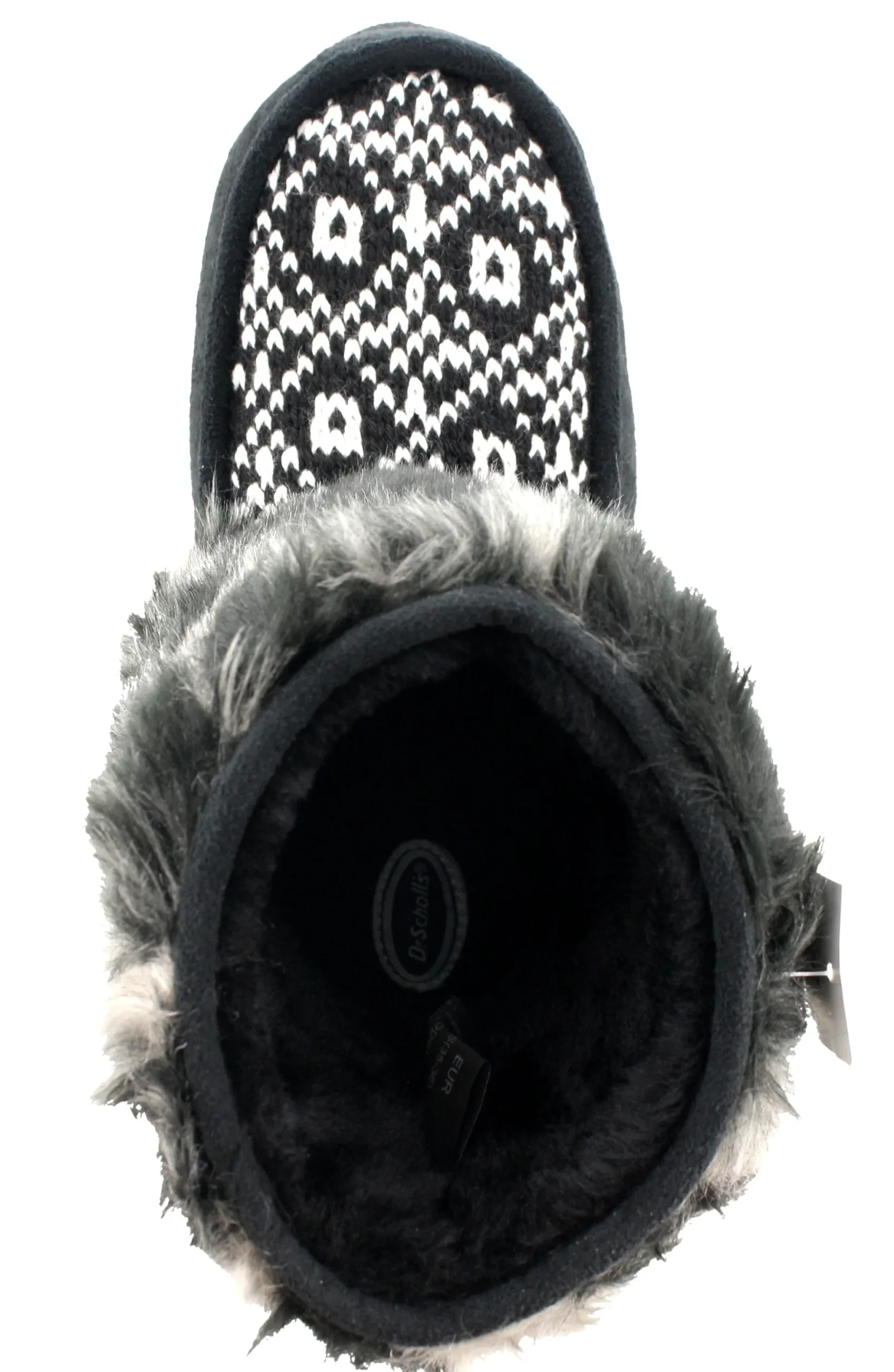 Soft faux-fur and a contrasting knitted print on the vamp give the Gigi slipper booties from Dr. Scholl’s an extra dose of warmth and style.