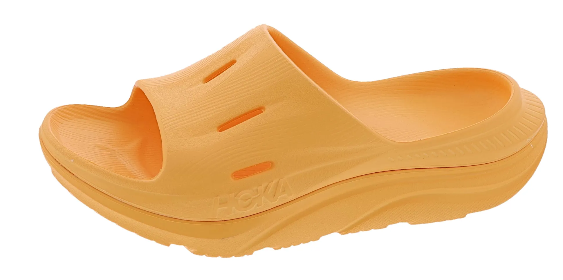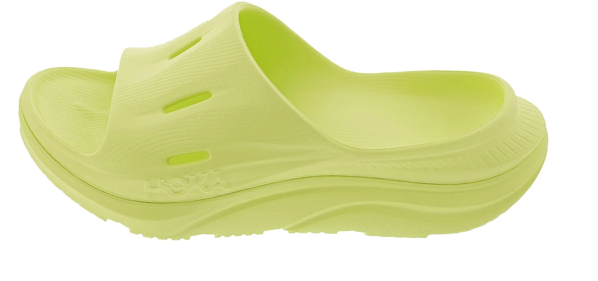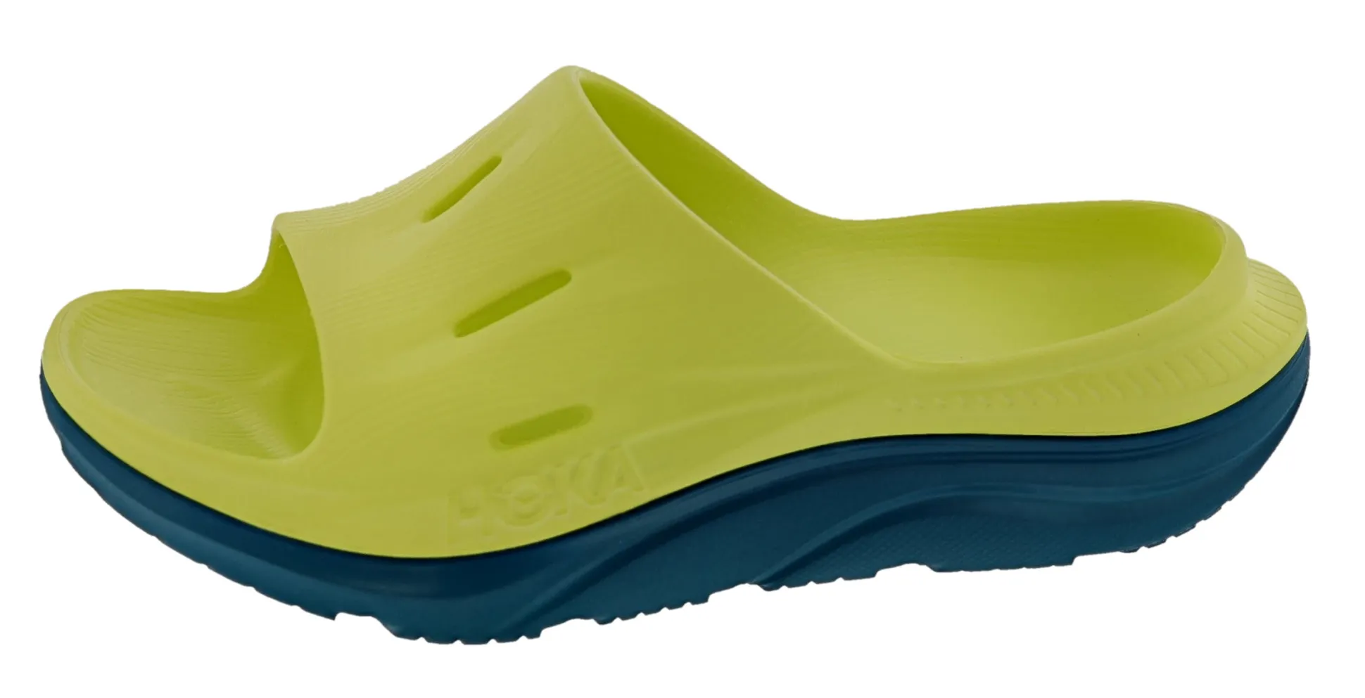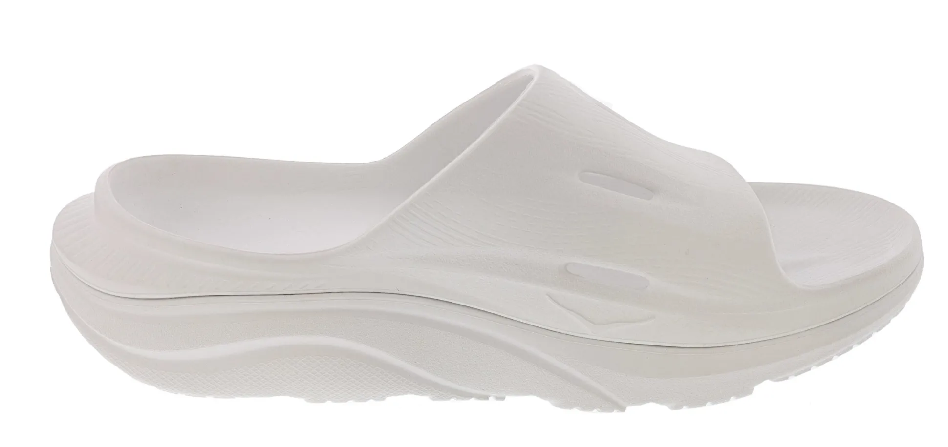 The Ora Recovery Slide 3 features a higher bed of soft cushion, designed to provide a forgiving impact and ride. The Ora Recovery Slide 3 contains features that make the shoe inherently stable, such as a wide base and our Active Foot Frame, for a moderate amount of stability that is still designed to work for neutral gaits.