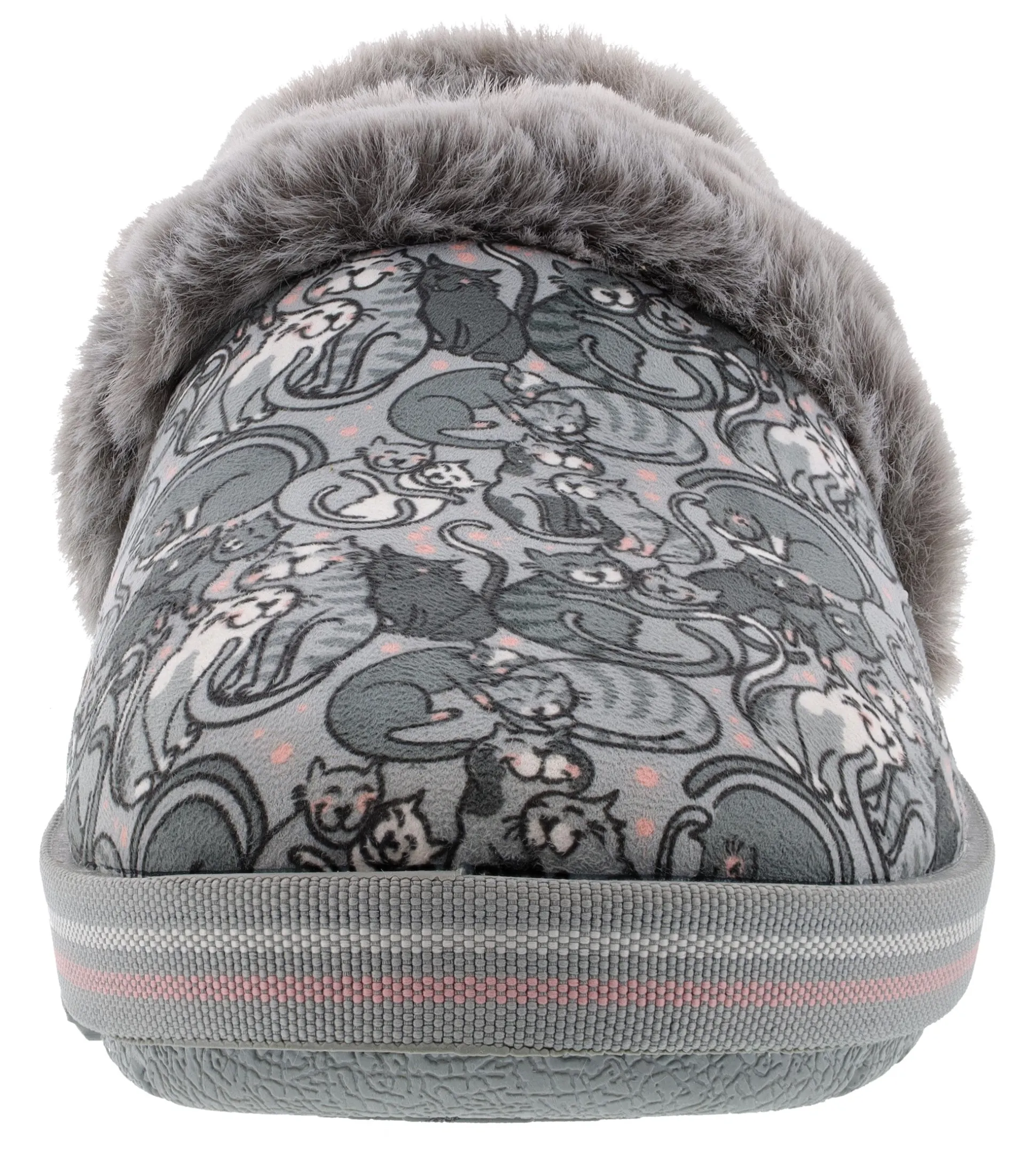 Cuddle up with your best kitties wearing women Skechers Bobs– Little Spoon shoe. This Bobs for cats from Skechers casual slipper features a soft microfiber suede-textured upper with an allover ‘Cuddles’ cat print, faux-fur trim and cushioned Memory Foam footbed.