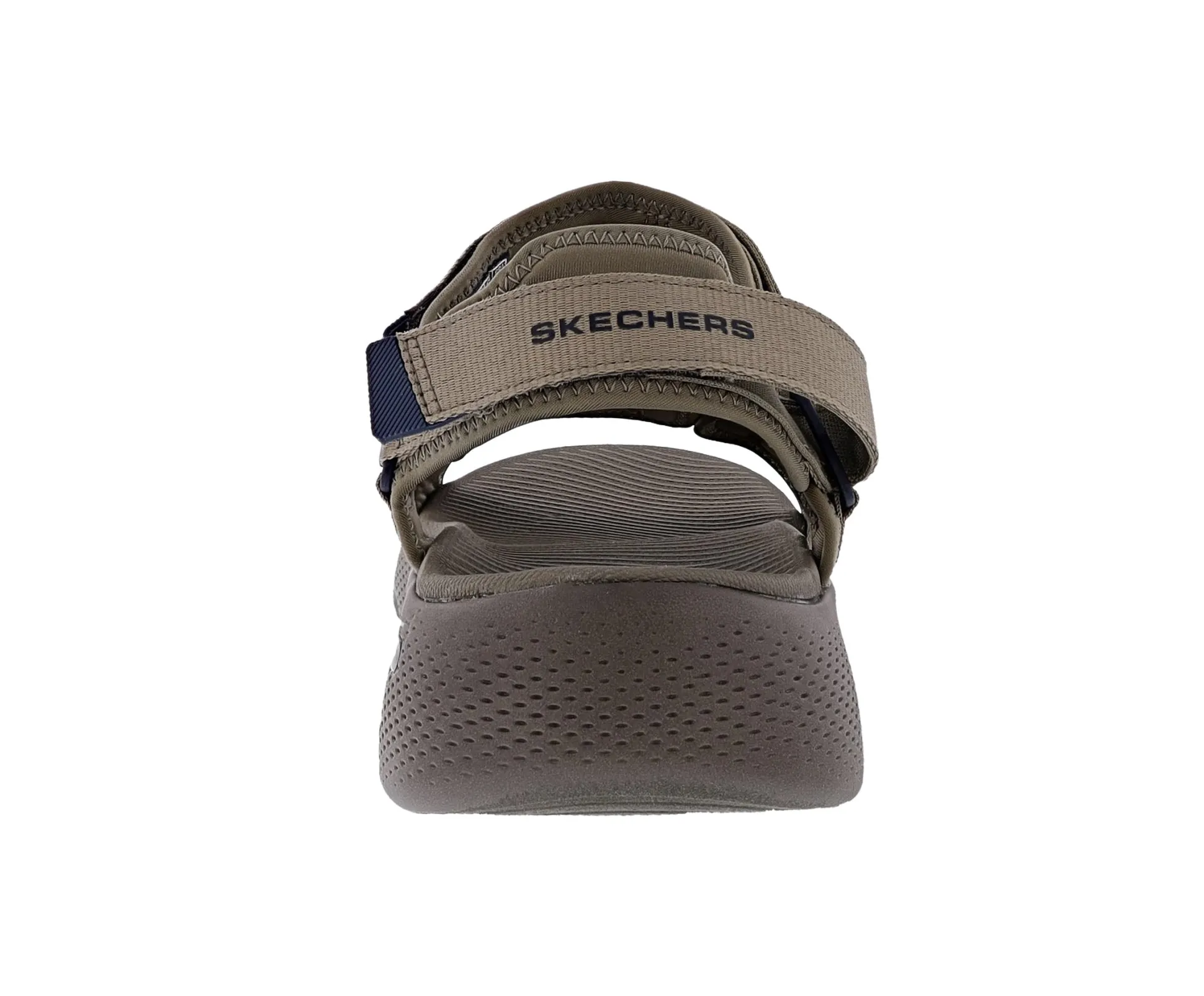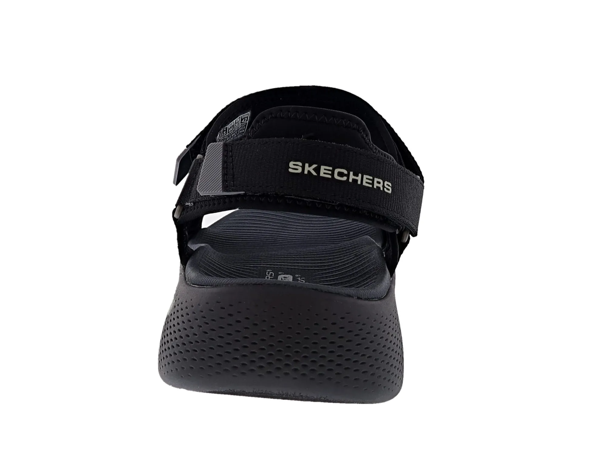 Step into waves of comfort wearing Skechers GO WALK Massage Fit Sandal. This innovative river sandal design features a woven ripstop strap upper with adjustable hook and loop closures, an ultra-lightweight, responsive HYPER BURST cushioned midsole and a contoured Goga Mat footbed.