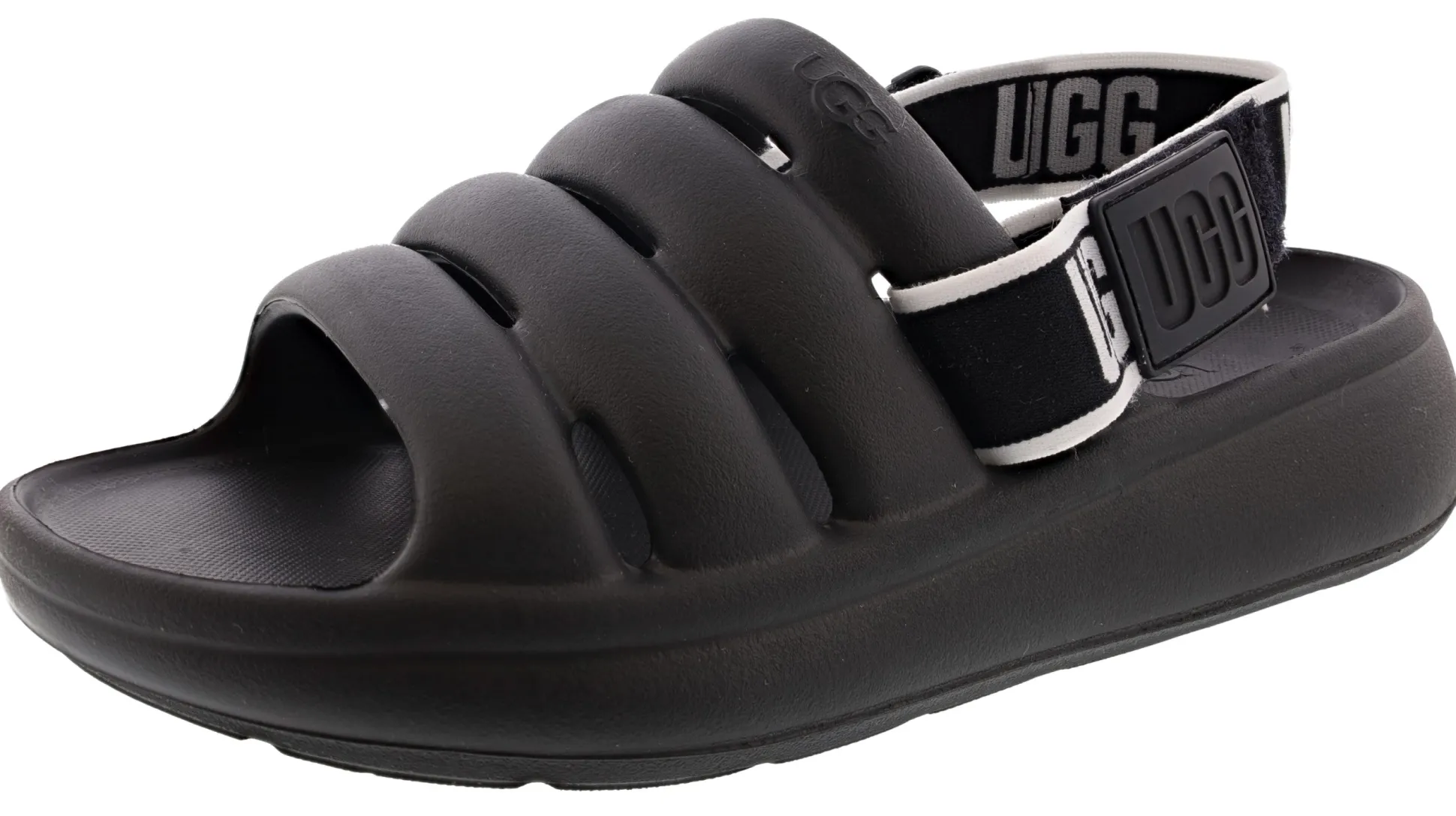 - UGG webbing, Removable heel strap, Adjustable heel strap, Elastic strap with UGG graphic