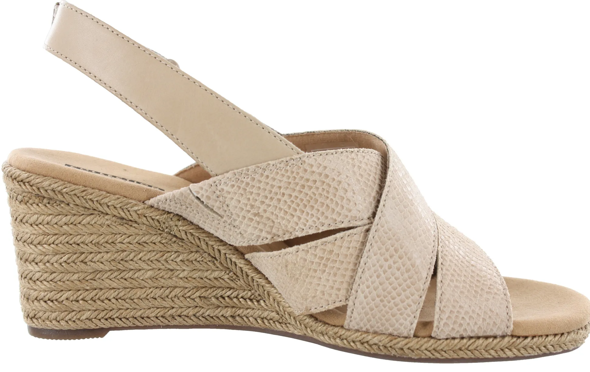 A wide diversity of textures and materials allow these comfortable wedges to stand out from the crowd. Its strappy upper is made from full grain leather and soft suede, and its jute-wrapped wedge adds extra summery appeal. A rubber outsole boosts traction and stability while an EVA midsole keeps it lightweight.These Clarks wedge sandals also offer Layers of Cushion Soft padding with an impact-reducing OrthoLite footbed reduce the shock of each step it takes. Adds interest to everything from denim shorts to sundresses.