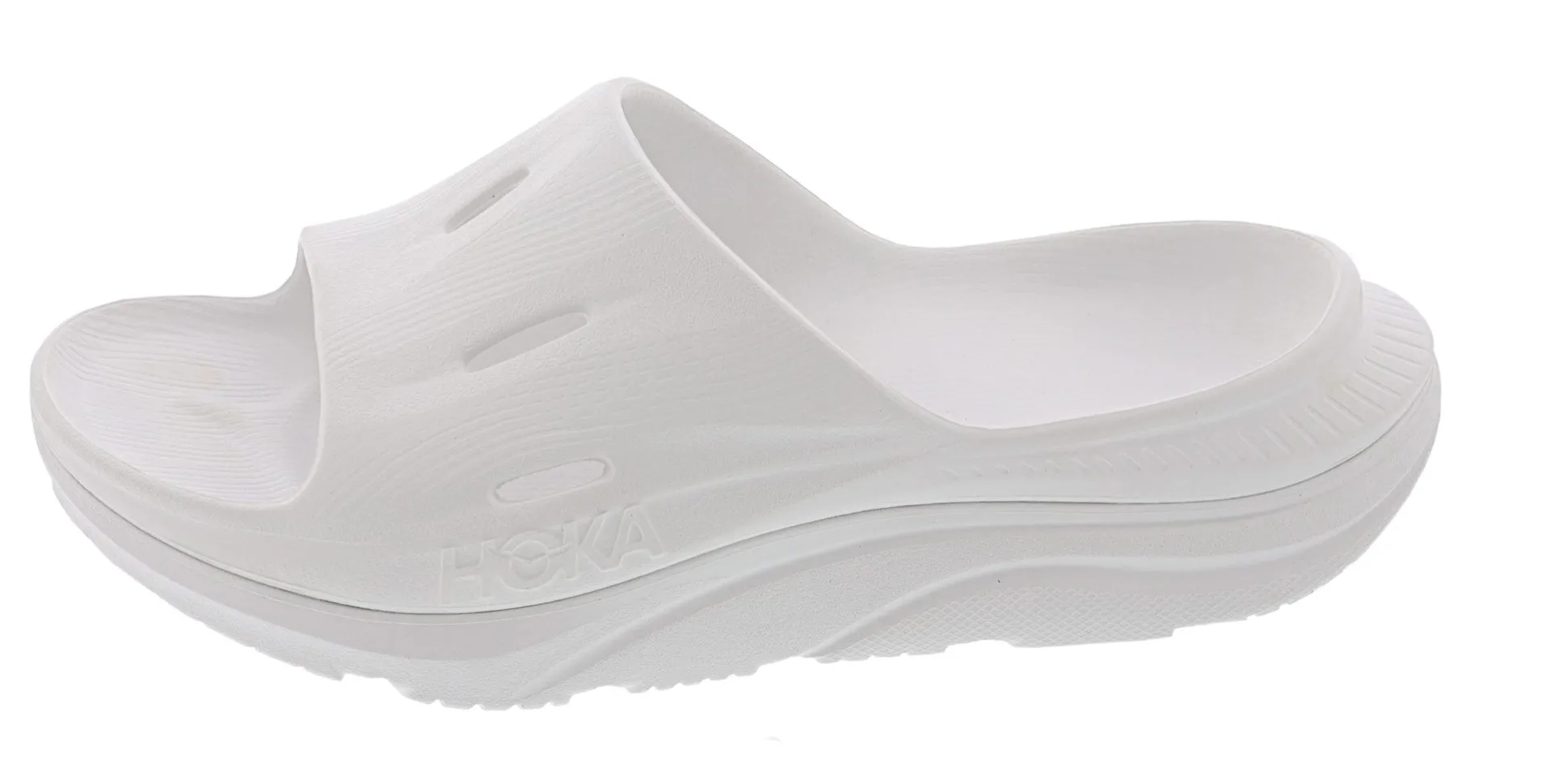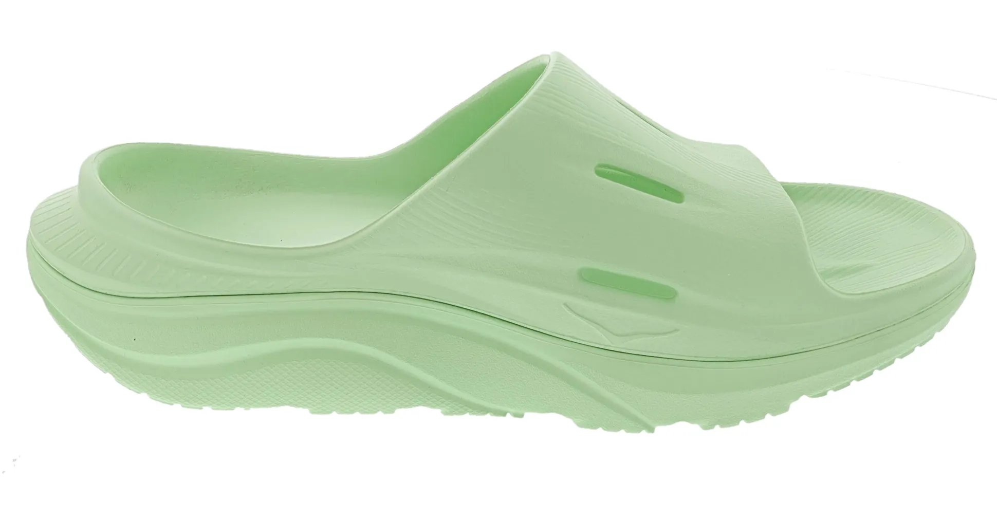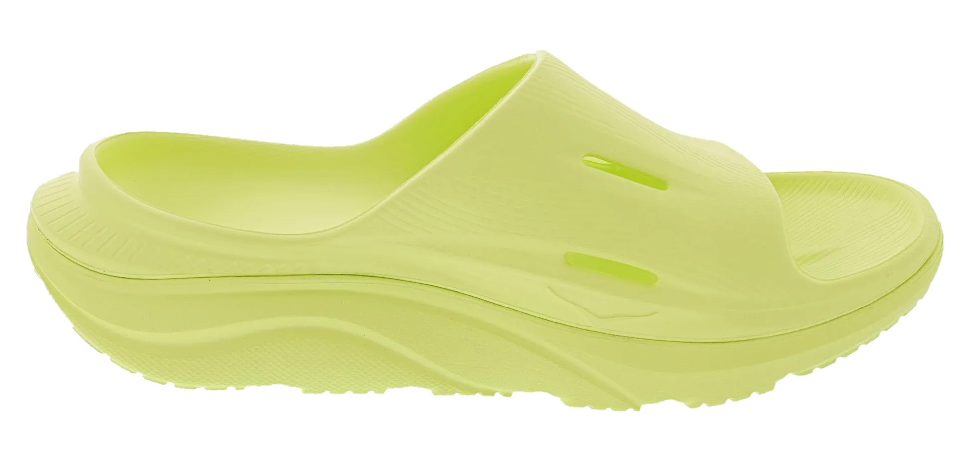 The Ora Recovery Slide 3 features a higher bed of soft cushion, designed to provide a forgiving impact and ride. The Ora Recovery Slide 3 contains features that make the shoe inherently stable, such as a wide base and our Active Foot Frame, for a moderate amount of stability that is still designed to work for neutral gaits.