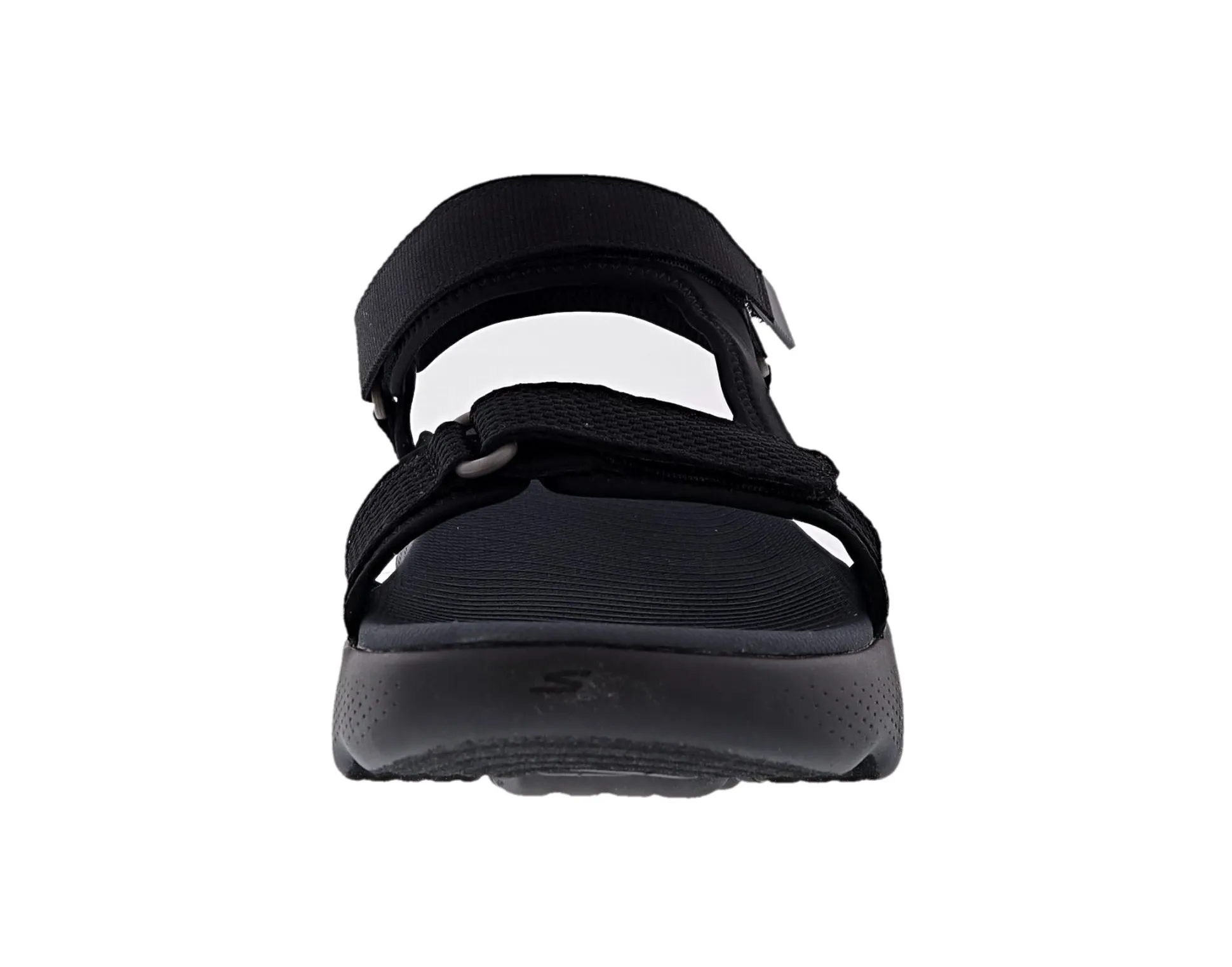 Step into waves of comfort wearing Skechers GO WALK Massage Fit Sandal. This innovative river sandal design features a woven ripstop strap upper with adjustable hook and loop closures, an ultra-lightweight, responsive HYPER BURST cushioned midsole and a contoured Goga Mat footbed.