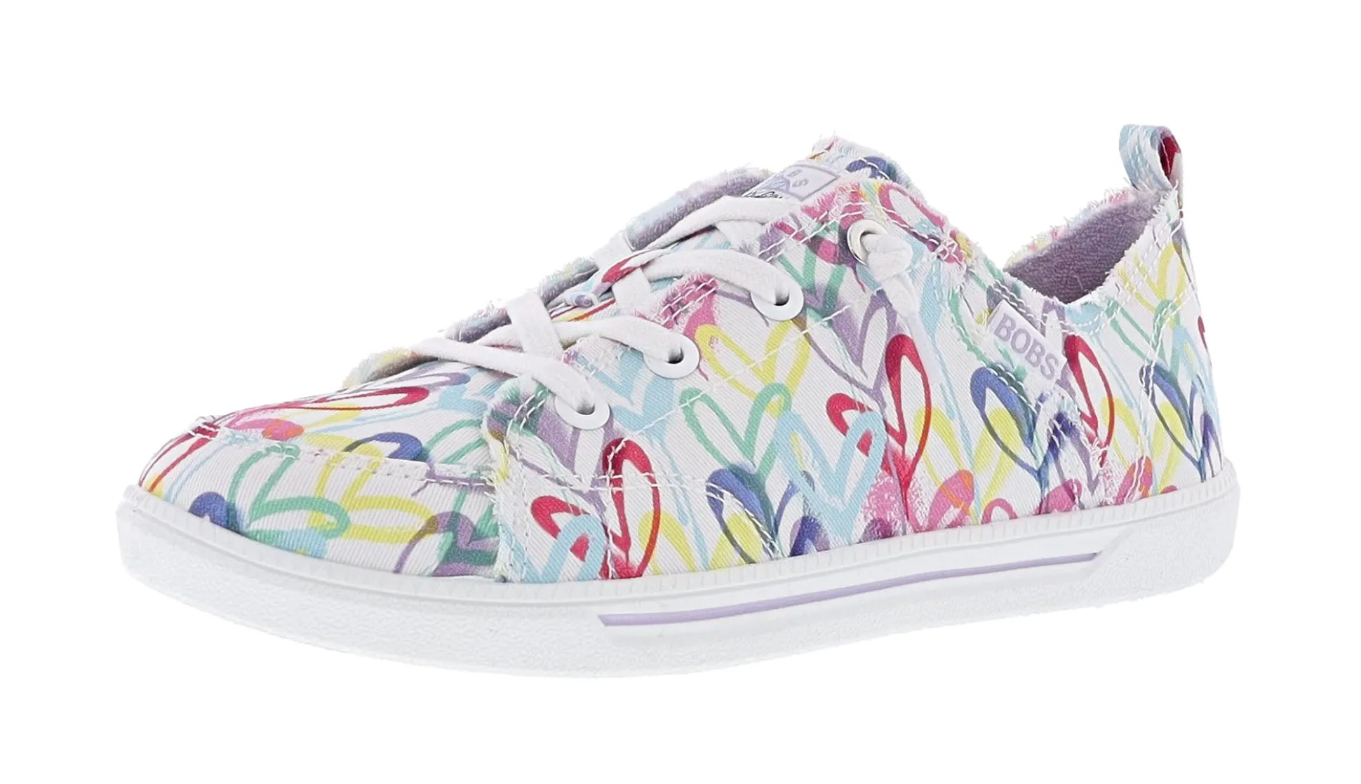 Show your love for rescues with BOBS from Skechers x JGoldcrown: BOBS B Cute 2.0 – Love Crown. This casual design features a ‘hearts’ printed canvas upper with tied-off decorative laces, and a cushioned Skechers Memory Foam insole.