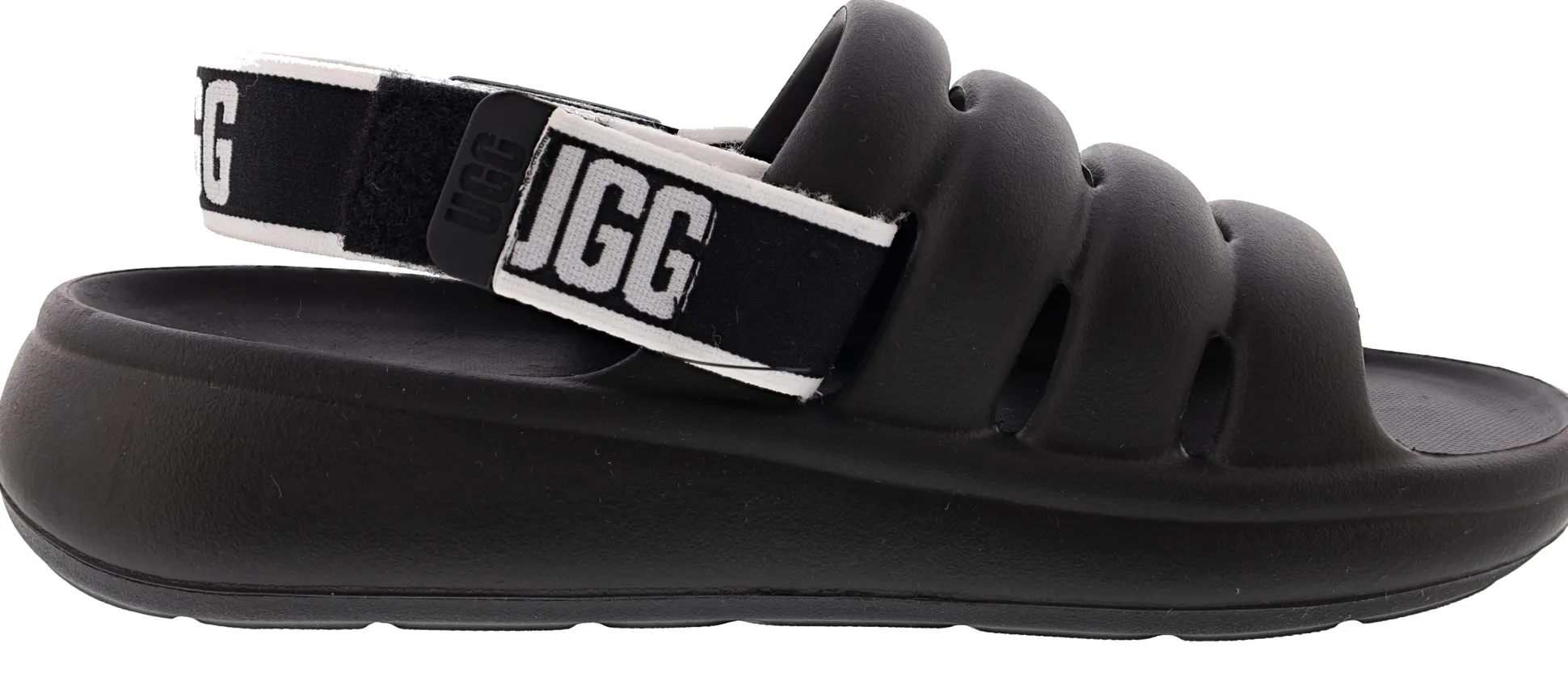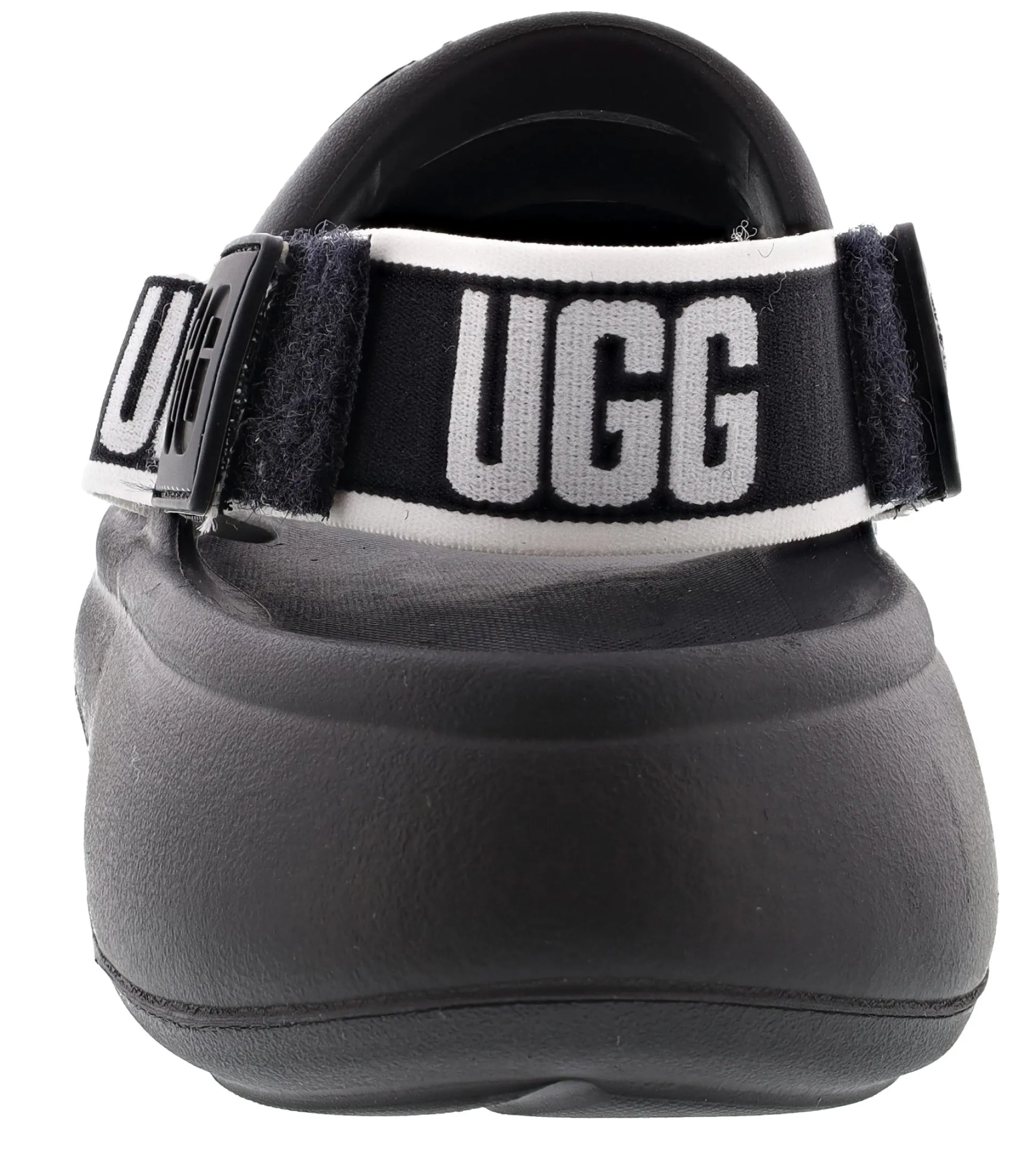 - UGG webbing, Removable heel strap, Adjustable heel strap, Elastic strap with UGG graphic